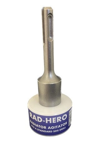 To speed up the chemical flushing process and improve the cleansing efficiency it is recommended to vibrate the radiator surface to loosen the deposits within. The RadHero has been developed for this purpose. Designed to fit into a standard SDS chuck the RadHero has a replaceable flat-faced head.